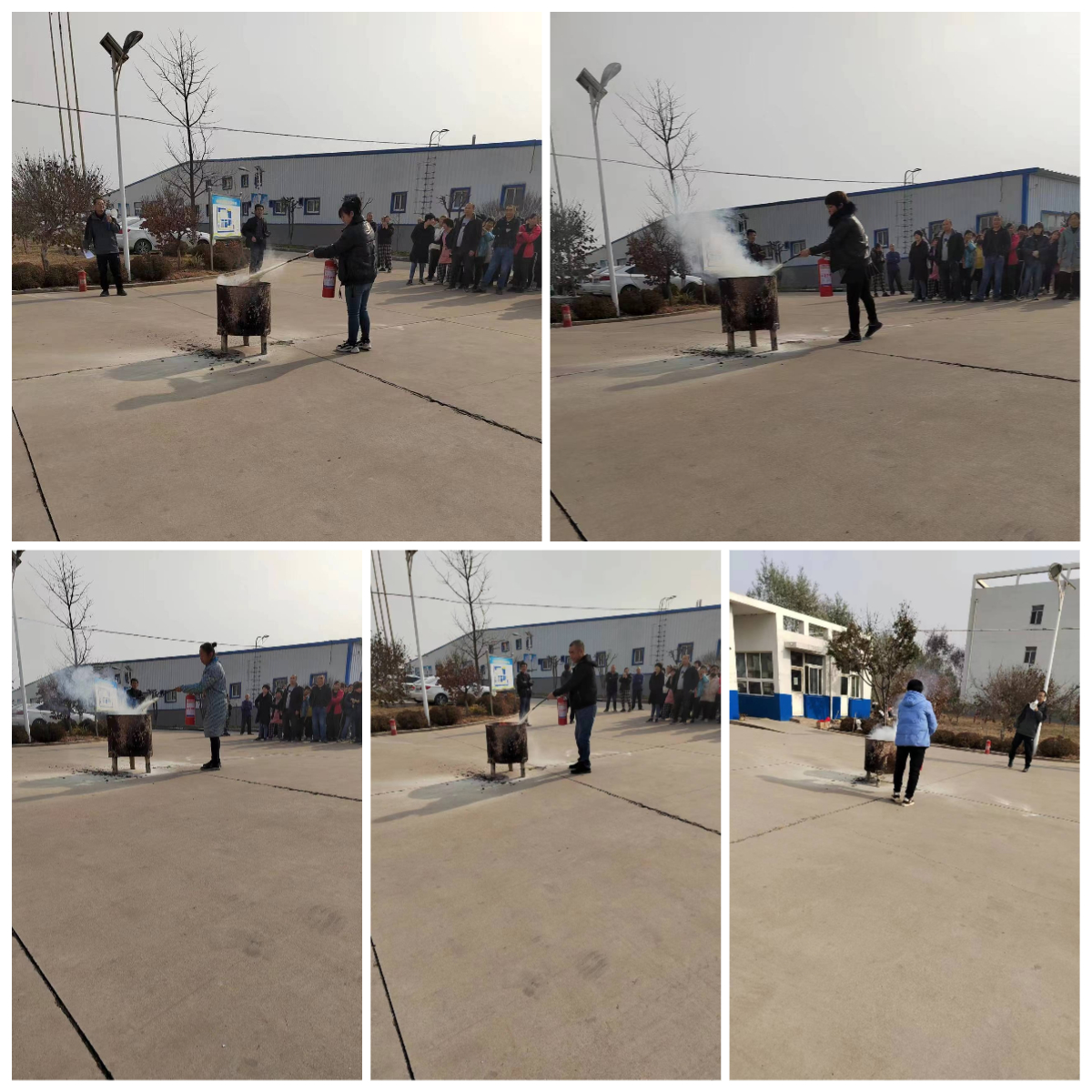 為了全方位讓大家了解消防措施,日福陶瓷的員工們還學習了如何正確使用滅火器,并進行了演示。